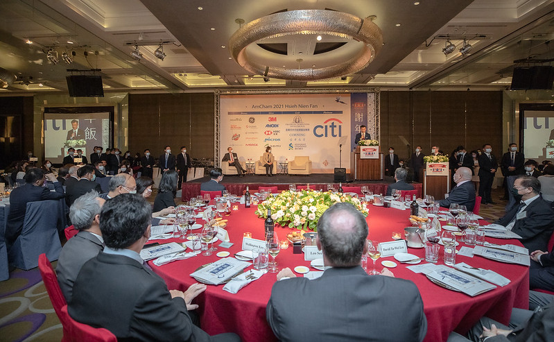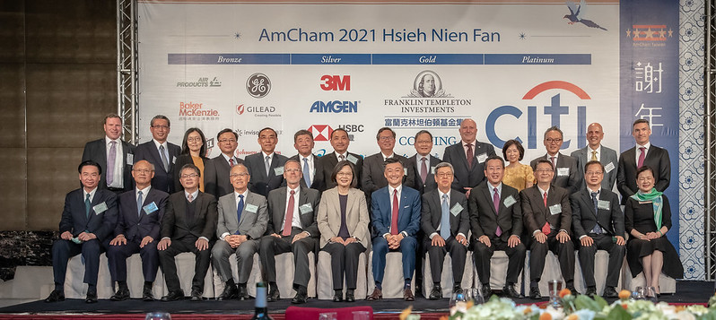On the evening of April 21, President Tsai Ing-wen attended the annual Hsieh Nien Fan (謝年飯) banquet hosted by the American Chamber of Commerce in Taiwan (AmCham Taiwan). In remarks at the event, President Tsai reiterated that her administration will continue to take concrete action to strengthen the close economic partnership between Taiwan and the US, and emphasized that Taiwan will keep working with like-minded countries to uphold freedom and security in the region while creating an ideal environment for economic recovery and development.