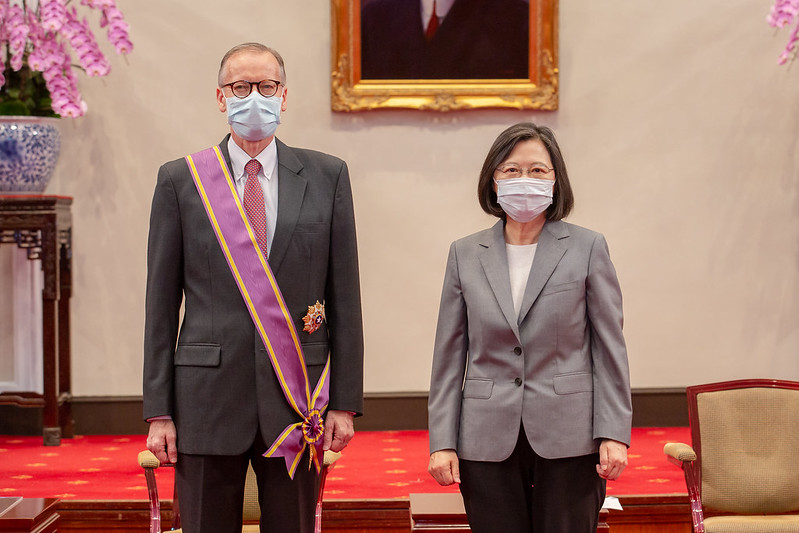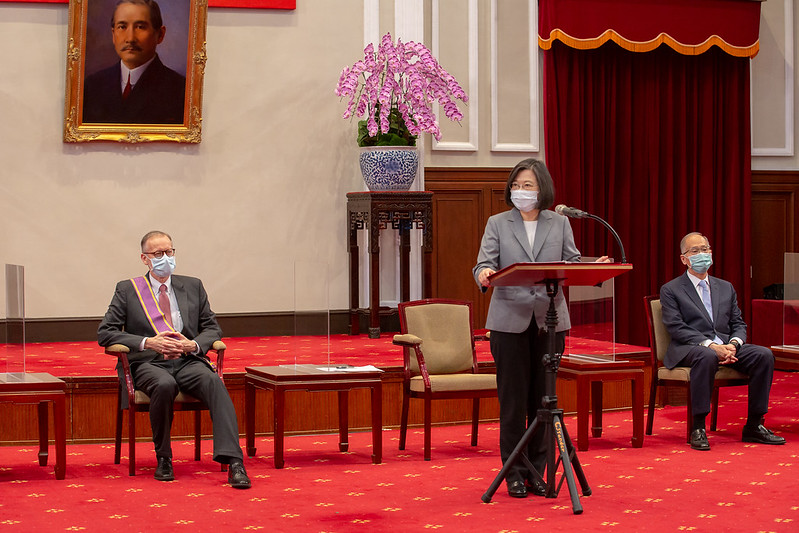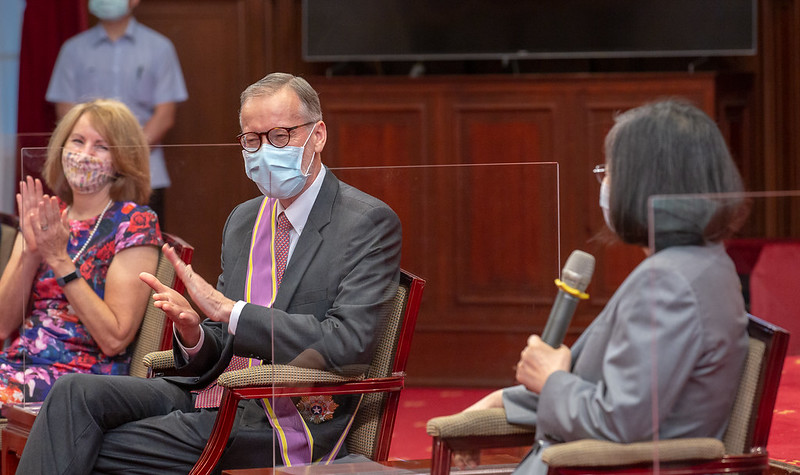 Before you leave, I wanted to present you with the Order of Brilliant Star with Grand Cordon to thank you for your efforts and the contributions you have made to advancing Taiwan-US relations. I am sure I am speaking for everyone in Taiwan when I say how sad we are to see you leave. And of course, I would like to invite you to come back anytime to this beautiful and friendly country to see your old friends, and more importantly, to have a bowl of your favorite mango shaved ice. As you have said, Taiwan will never leave you, and we will continue to witness more advancements in Taiwan-US ties.