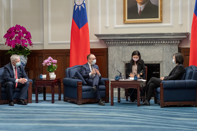 The delegation was jointly led by Matas Maldeikis, head of Lithuania's Parliamentary Group for Relations with Taiwan; Jānis Vucāns, chairman of Latvia's Group for Interparliamentary Relations with Taiwan; and Jüri Jaanson, chairman of the Estonia-Taiwan Support Group. They were accompanied to the Presidential Office by Deputy Minister of Foreign Affairs Tien Chung-kwang (田中光), with Secretary-General to the President David T. Lee (李大維) also in attendance.