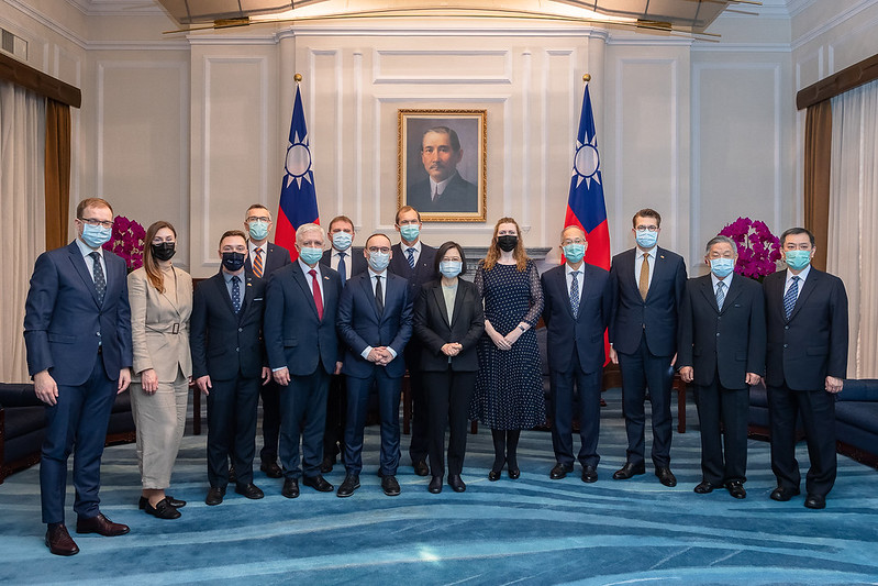 On the morning of November 29, President Tsai Ing-wen met at the Presidential Office with the first-ever joint delegation of parliamentarians from Lithuania, Latvia, and Estonia to visit Taiwan, including the heads of the three Baltic states' parliamentary groups for friendship with Taiwan. In remarks at the meeting, President Tsai stated that Taiwan is willing to cooperate with our European friends to defend our shared values and protect our free and democratic way of life, and expressed hope that by working together, Taiwan and the three Baltic states can develop stronger and closer ties.