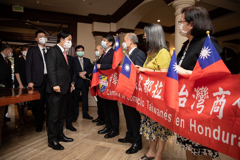 After the delegation's charter flight had landed, Ambassador to Honduras Diego Wen (溫曜禎) and Honduran Ministry of Foreign Affairs Chief of Protocol Ramón Valladares, boarded the plane to welcome Vice President Lai, while Honduran Vice President María Antonia Rivera and Deputy Minister of Foreign Affairs José Isaías Barahona shared a warm greeting with him as he disembarked from the flight. Vice President Lai then received military guard honors as he proceeded along a red carpet, and ascended a dais to wave to the crowd that had gathered to greet the delegation.