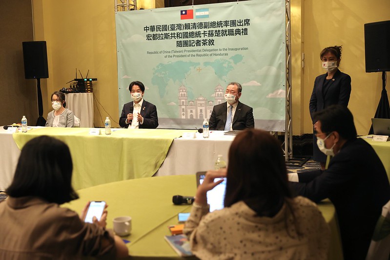 Vice President Lai Ching-te held a reception in Honduras for the press corps traveling with his delegation to attend the inauguration of Honduran President Xiomara Castro on the evening of January 27 local time (morning of January 28 Taipei time). The vice president shared his thoughts on his first trip abroad in this role as well as the delegation's accomplishment of the three-part mission entrusted to it by President Tsai Ing-wen, which comprised deepening bilateral ties, strengthening cooperation with the Republic of Honduras, and expanding democratic Taiwan's international participation.