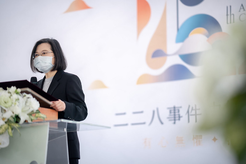 On the morning of February 28, President Tsai Ing-wen attended the nation's main memorial ceremony marking the 75th anniversary of the 228 Incident. At the event, President Tsai presented a wreath of flowers in memory of the victims of the incident, and thanked the many survivors, family members, and civil society groups who have worked for years to spur government action, giving us their understanding, support, and advice. The president expressed hope that in Taiwan, a stable democracy that has received international acclaim, people from all political parties and walks of life will rationally and maturely move forward together in the direction that most benefits our democratic development, carrying on the important work of transitional justice.