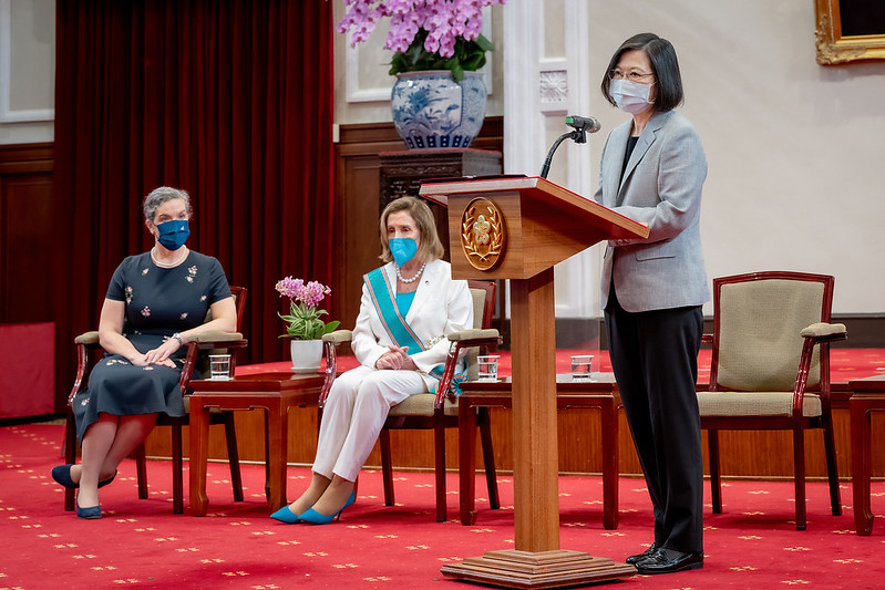 Once again, I welcome Speaker Pelosi and the delegation to Taiwan. Thank you for taking concrete action to show staunch support for Taiwan at this critical moment and for expressing the US's consistent policy supporting Taiwan's self-defense. The Order of Propitious Clouds with Special Grand Cordon represents our gratitude to Speaker Pelosi as well as our wish to continue advancing Taiwan-US relations through greater cooperation.