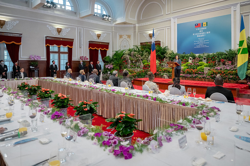 It is a great pleasure to host this state banquet at the Presidential Office to welcome Prime Minister Gonsalves and the distinguished members of his delegation. I would like to thank you all once again for visiting us, and for demonstrating the profound bond of friendship between Taiwan and St. Vincent and the Grenadines.