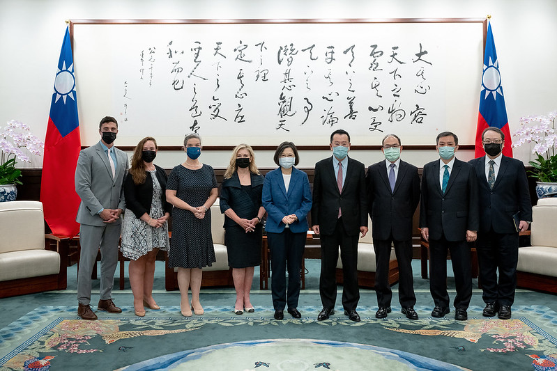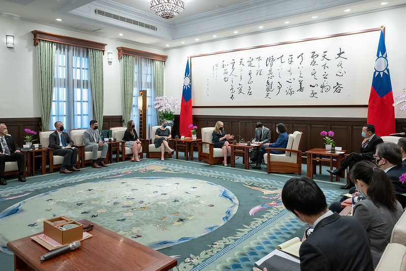 The delegation was accompanied to the Presidential Office by American Institute in Taiwan Taipei Office Director Sandra Oudkirk.