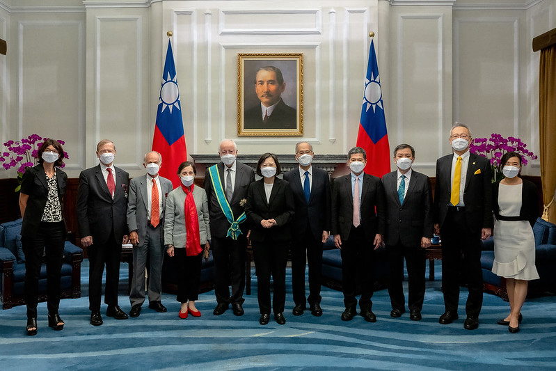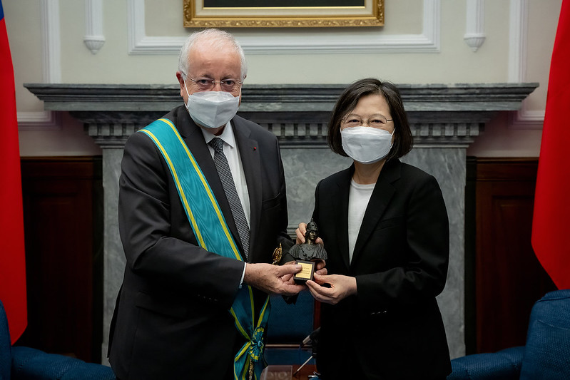 On the afternoon of September 5, President Tsai Ing-wen presented Jean-Robert Pitte, perpetual secretary of the Academy of Moral and Political Sciences under the Institut de France, with the Order of Propitious Clouds with Grand Cordon, in recognition of his outstanding contributions to cultural exchange between Taiwan and France. In remarks, President Tsai stated that Perpetual Secretary Pitte has chaired the judges panel of the Taiwan-France Cultural Award since 2017, and thanked him for his efforts over this period, which has seen many outstanding award winners, and many Europeans encouraged to take up research on Taiwanese culture. The president emphasized that Taiwan and France have a shared commitment to democracy and freedom, and will continue to strengthen our cooperation in cultural exchange and in many other fields, while contributing more to world peace and prosperity as well as democracy and freedom.