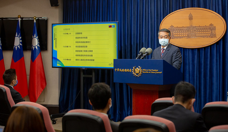 Presidential Office Spokesperson Xavier Chang (張惇涵) opened the press conference by explaining the purpose of this trip. He noted that over the past two years as the COVID-19 pandemic spread, countries around the globe imposed border restrictions that impacted international travel and exchanges, seriously affecting our diplomatic ally the Republic of Palau, a country world-renowned for its tourism sector. The spokesperson stated that after more than two years, border restrictions are easing in many countries, and that thanks to the unity our people have shown in fighting the pandemic, Taiwan reopened its borders on October 13 – a major stride toward resuming normal life.