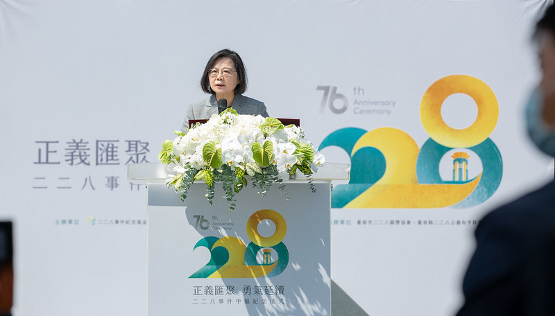 On the morning of February 28, President Tsai Ing-wen attended the nation's main memorial ceremony marking the 76th anniversary of the 228 Incident. The president offered a floral wreath in memory of the victims, and stated that the implementation of transitional justice is a race against time. She noted that the victims and their families have long hoped for transitional justice, and that following Taiwan's democratization, the government is also duty-bound to pursue it. The president called on government agencies to take a firm stand and speed up the implementation of transitional justice work so that Taiwanese can pursue freedom and prosperity with dignity, engage with the world with dignity, and be their true selves with dignity, as that is the best way to commemorate the 228 Incident.