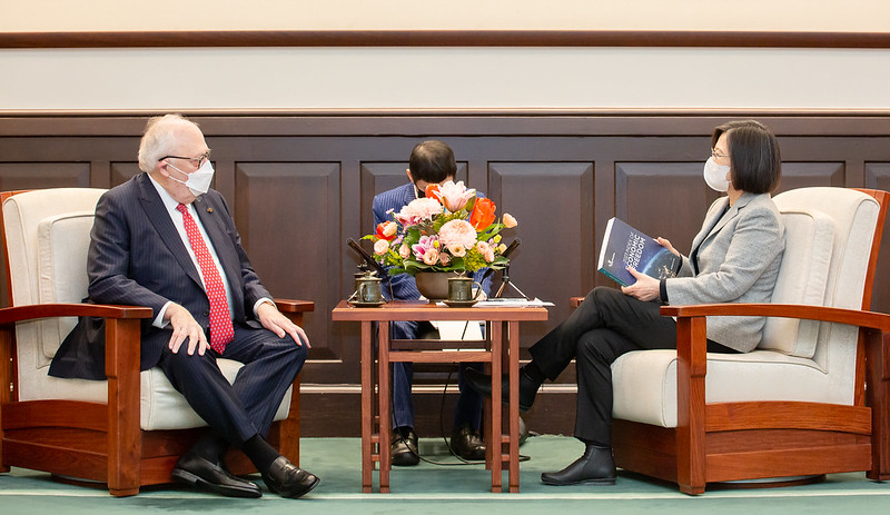 Dr. Feulner stated that he has been very encouraged in recent years to see very broad bipartisan support from individuals across the American political spectrum for a very close US-Taiwan relationship. He pointed out that the visit last year by Speaker of the US House of Representatives Nancy Pelosi and her delegation caused some concern for other people in the Asia-Pacific region, but for them it was a sign of continued bipartisan support for the freedom, the independence, and the vigor of the US-Taiwan relationship. Dr. Feulner mentioned that President Tsai has also been recently visited by both the chairman and the ranking member of the new China Select Committee in the US House of Representatives, both of whom Dr. Feulner is familiar with. He also mentioned that the breadth of strengthening relationships between our two peoples is evident across the political spectrum, as it was by the visit of Foreign Minister Joseph Wu (吳釗燮) and National Security Council Secretary-General Wellington Koo (顧立雄) to Washington 10 days previous.