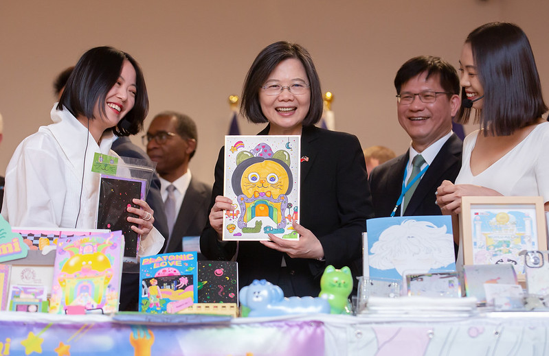 On the afternoon of March 30 local time (early morning of March 31 Taipei time), President Tsai Ing-wen, on transit through the United States, met the Taiwan allies' permanent representatives to the United Nations (UN) at the Taipei Economic and Cultural Office (TECO) in New York, and interacted with Taiwanese-American Liya Chu (朱如茵), the winner of MasterChef Junior (American season 8), and A ee mi (張雅晴) and Saitemiss (鍾逸婷), two Taiwanese illustrators who will participate in the 2023 MoCCA Arts Fest.