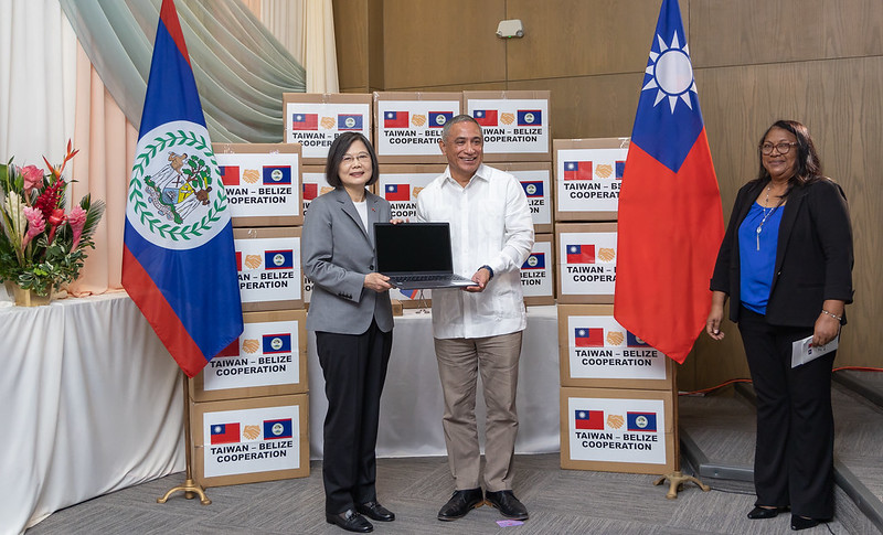 On the morning of April 3 local time (evening of April 3 Taipei time), President Tsai Ing-wen witnessed the signing of a technical cooperation framework agreement by the foreign ministers of Taiwan and Belize and attended a laptop donation ceremony before sitting in bilateral talks with Prime Minister John Briceño of Belize.