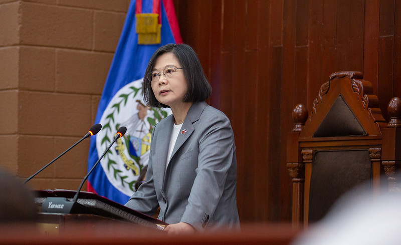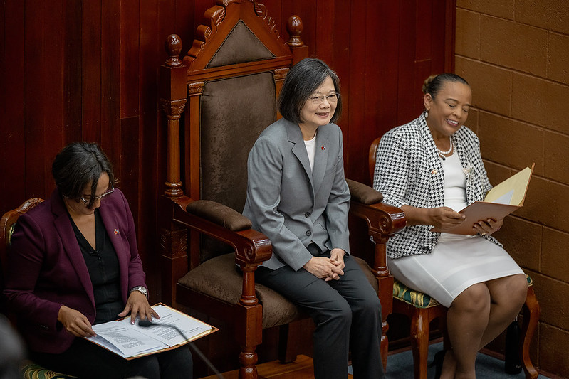 Upon arriving at the National Assembly of Belize, President Tsai was greeted by Prime Minister John Briceño and Leader of the Opposition Shyne Barrow, after which she was accompanied by Speaker of the House of Representatives Valerie Woods and President of the Senate Carolyn Trench-Sandiford into the assembly, where she delivered an address.