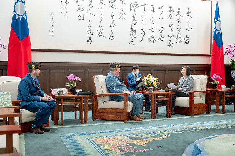 On the afternoon of May 15, President Tsai Ing-wen met with Timothy Borland, commander-in-chief of the Veterans of Foreign Wars (VFW) of the United States. In remarks, President Tsai said that last year, the Taipei Economic and Cultural Representative Office (TECRO) in the United States established a Veterans Affairs Division, and our Veterans Affairs Council (VAC) has already dispatched permanent staff to Washington, DC. The president also expressed hope that with the Veterans Affairs Division, Taiwan and the US can exchange valuable experience in veteran issues ranging from career counseling to health insurance, and jointly improve veteran welfare and develop deeper and broader exchanges between Taiwan and the US.