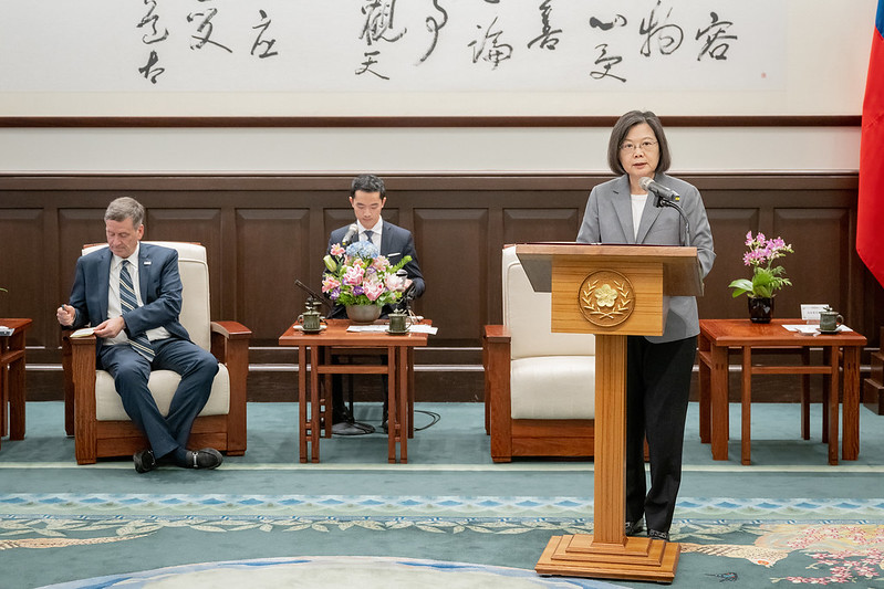Welcome to the Presidential Office. This is Ambassador Mark Green's first visit to Taiwan. Now that the COVID-19 pandemic has subsided, I am delighted that a Wilson Center delegation is visiting Taiwan once again. I also welcome our old friend Ms. Ileana Ros-Lehtinen back to Taiwan.