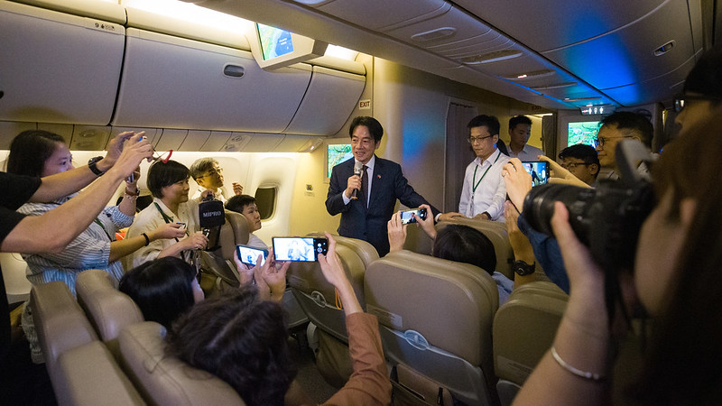 Following a transit stop in New York, Vice President Lai Ching-te and his delegation departed for the Republic of Paraguay, where they will attend the inauguration of incoming President Santiago Peña Palacios. The vice president spoke with the traveling press corps onboard the charter flight, noting that President Tsai Ing-wen gave him two objectives she hopes to accomplish through this trip: to strengthen the friendship between Taiwan and Paraguay and to expand upon our bilateral collaboration and spur prosperity for both our countries.