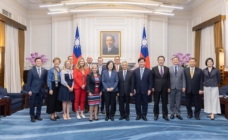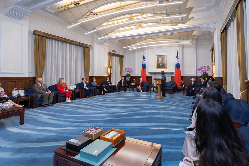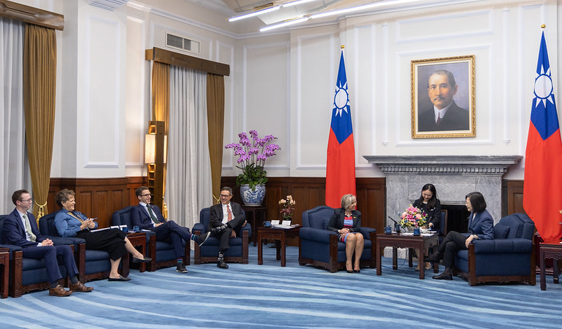 President Tsai, it is incredible to be back again. And I am fond, particularly, of your remembrance of our last meeting and trip. And you are correct, President Tsai, you have much success to be proud of, and the recognition of that around the world, including the United States, is remarkable. Madame President, I also want to thank you personally for hosting my entire delegation and my husband and myself on the beautiful island of Taiwan. It is quite an honor to have this invitation and to participate in this meeting with you today.