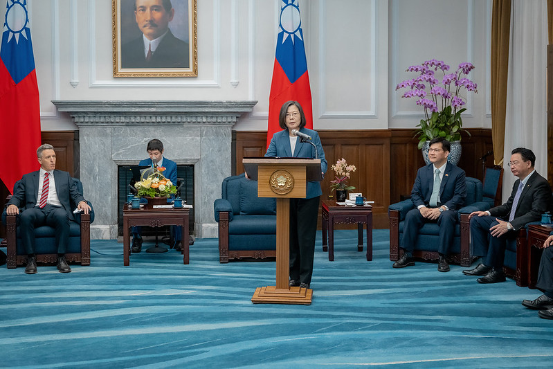 As elected representatives, Mr. Wilson said, the members of the delegation have some understanding of what it means to fight elections and to pursue policy outcomes while seeking to provide public service and responsible leadership. He then commended President Tsai for her contributions to democracy and governance in Taiwan and to good governance in the region through her sustained and progressive leadership.
