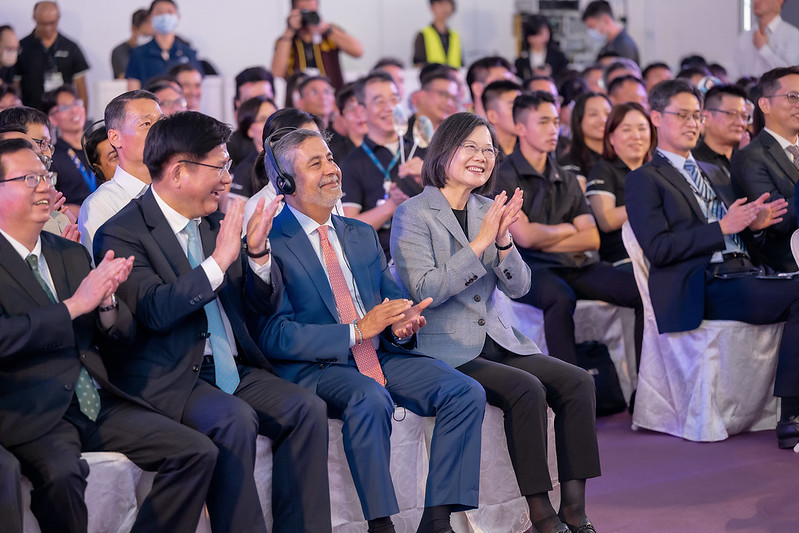 Following her remarks, the president joined other guests in opening the facility's launch ceremony. Also in attendance at the event were Micron Corporate Vice President and Taiwan Country Manager Donghui Lu (盧東暉) and American Institute in Taiwan Taipei Office Director Sandra Oudkirk.