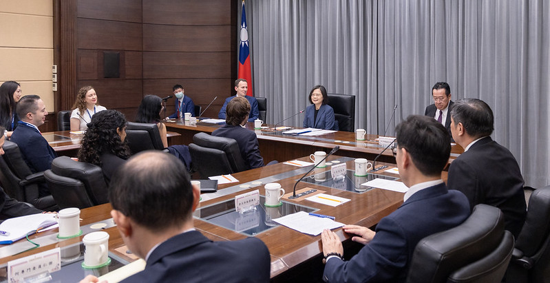 Furthermore, this year, we signed the first agreement under the Taiwan-US Initiative on 21st Century Trade, and the European Union adopted also the European Chips Act. We hope to leverage Taiwan's economic and industrial strengths to further deepen partnerships with Europe, the United States, and others. Meanwhile, our guests today have also shown a keen interest in such fields as environmental sustainability, biotechnology and medicine, and technological development. Taiwan is willing and able to work with even more like-minded countries to jointly make advancements in these and other fields in order to promote global prosperity and development.