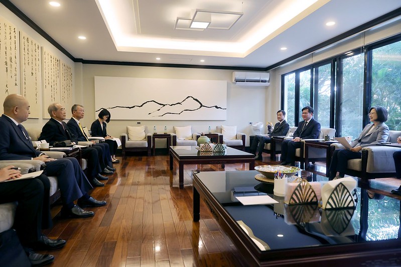 President Tsai mentioned that in the morning she had just welcomed Chief Representative Katayama Kazuyuki of the Japan-Taiwan Exchange Association Taipei Office to his new post in Taiwan, and was now meeting for a discussion with Chairman Ohashi. Taiwan-Japan relations, she said, are built up in just this way, one step at a time, and she once again thanked the visitors for their support of Taiwan. President Tsai expressed confidence that the Taiwan-Japan Economic and Trade Conference and the Taiwan-Japan Commission on Cooperation in Third Country Markets, events that Chairman Ohashi is scheduled to attend over the next two days, will be very successful and productive.