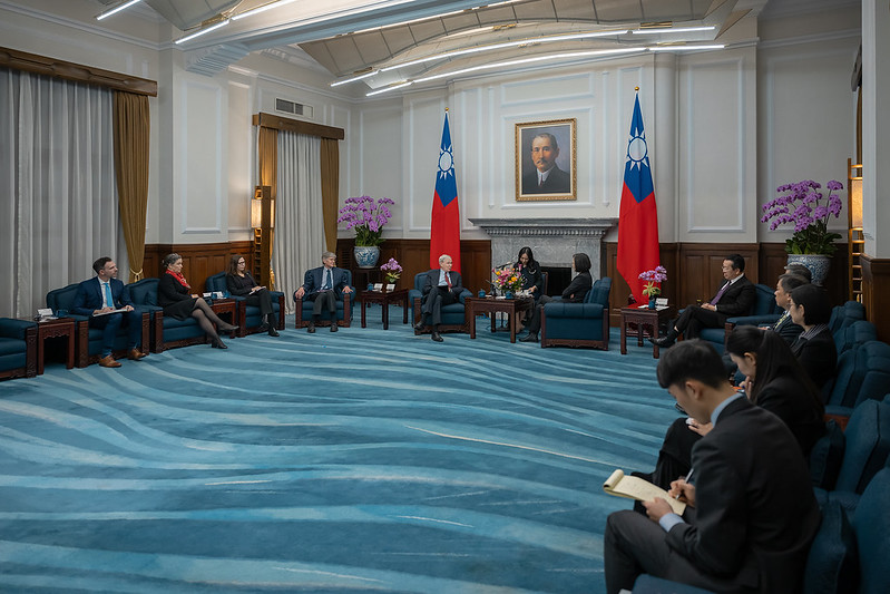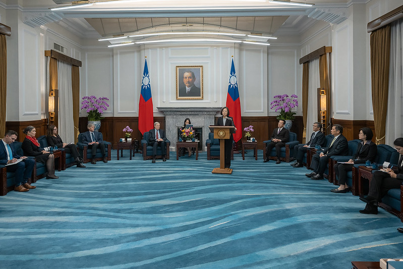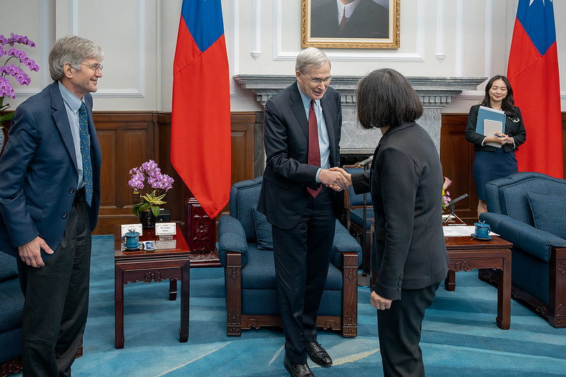 Your visit is highly meaningful. It fully demonstrates US support for Taiwan's democracy and highlights the close and staunch partnership between Taiwan and the US. As I have emphasized on multiple occasions, Taiwan at this moment has become a Taiwan of the world. And over the past eight years, Taiwan has continued to deepen cooperation with other countries. In particular, we signed the first agreement under the Taiwan-US Initiative on 21st-Century Trade last year. This is the most comprehensive trade agreement signed between Taiwan and the US since 1979. It also marks an important milestone for our economic and trade relations.