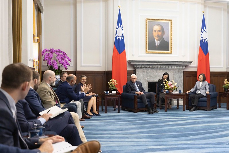 The delegation was accompanied to the Presidential Office by American Institute in Taiwan Taipei Office Director Sandra Oudkirk.