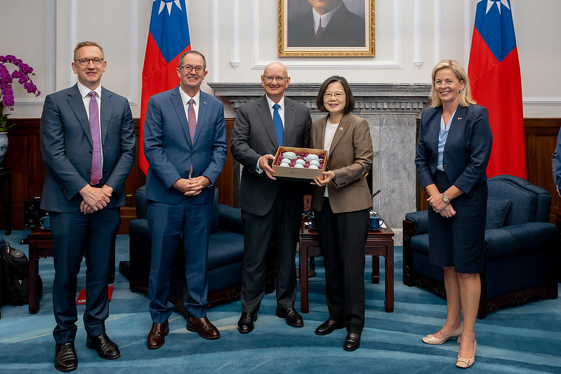 The delegation also included Members of Parliament Julian Hill and Angie Bell and Senator Dave Sharma and was accompanied to the Presidential Office by Australian Office in Taipei Deputy Representative Daniel Stuart.