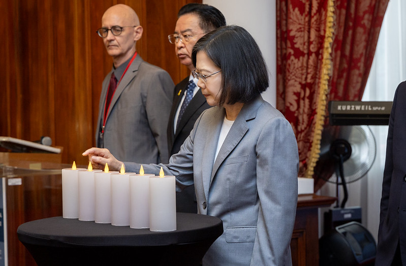 Upon arrival, President Tsai took in a musical performance and watched as a rabbi recited a prayer before joining other distinguished guests to light candles in memory of the Holocaust's victims.