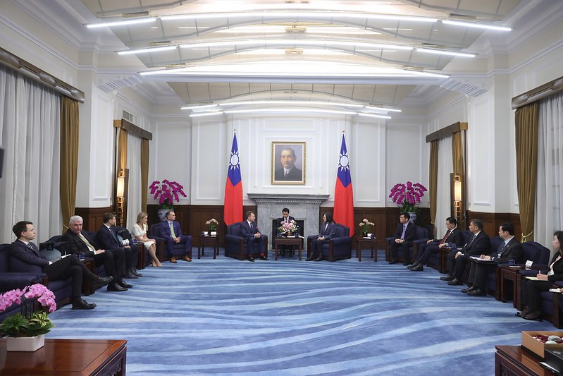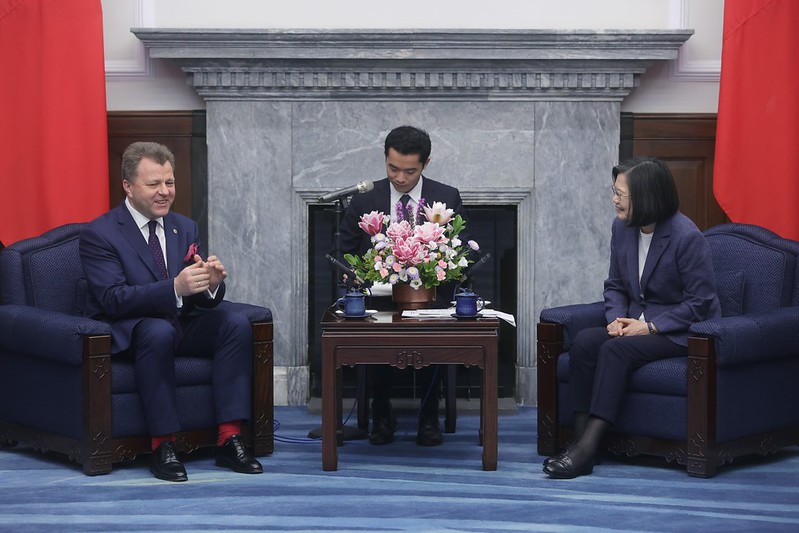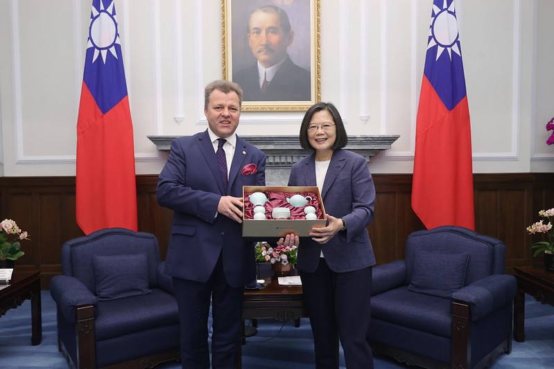 The delegation was accompanied to the Presidential Office by Lithuanian Representative to Taiwan Paulius Lukauskas.
