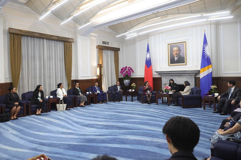 The delegation also included Minister of Foreign Affairs and Trade Kalani Kaneko. The delegation was accompanied to the Presidential Office by Ambassador of the Marshall Islands to Taiwan Anjanette Kattil.