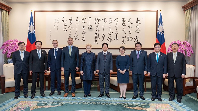 The delegation was accompanied to the Presidential Office by Lithuanian Representative to Taiwan Paulius Lukauskas.