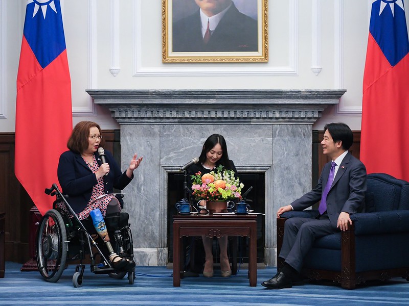 The delegation was accompanied to the Presidential Office by American Institute in Taiwan Taipei Office Director Sandra Oudkirk.