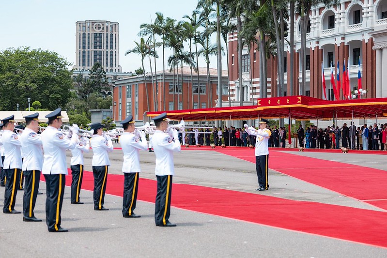 The welcome ceremony began at 10:30 a.m. in the plaza fronting the Presidential Office. President Lai and Prime Minister Drew each delivered remarks after a 19-gun salute, the playing of the two countries’ national anthems, and a review of the military honor guard.