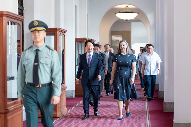 On the afternoon of July 3, President Lai Ching-te presented Sandra Oudkirk, director of the American Institute in Taiwan (AIT) Taipei Office, with the Order of Brilliant Star with Grand Cordon in recognition of her outstanding contributions to Taiwan-US relations. In remarks, President Lai stated that with Director Oudkirk’s efforts over these past three years, Taiwan and the US have seen considerable results in national defense and economic and trade cooperation, and that we are at a time in which Taiwan-US ties have never been better. The president expressed hope that Director Oudkirk will continue to support Taiwan in the future, help advance Taiwan-US cooperation, and help us achieve even greater mutual development.