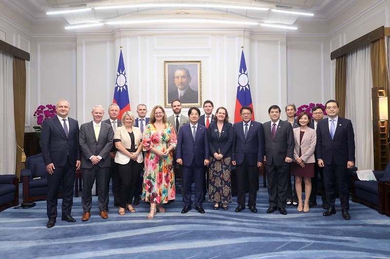 The delegation also included Members of Parliament Daniëlle Hirsch, Roelien Kamminga, Isa Kahraman, Jan Paternotte, Derk Boswijk, Dennis Ram, Tom van der Lee, Femke Zeedijk, and Eric van der Burg. The delegation was accompanied to the Presidential Office by Netherlands Office Taipei Representative Guido Tielman.