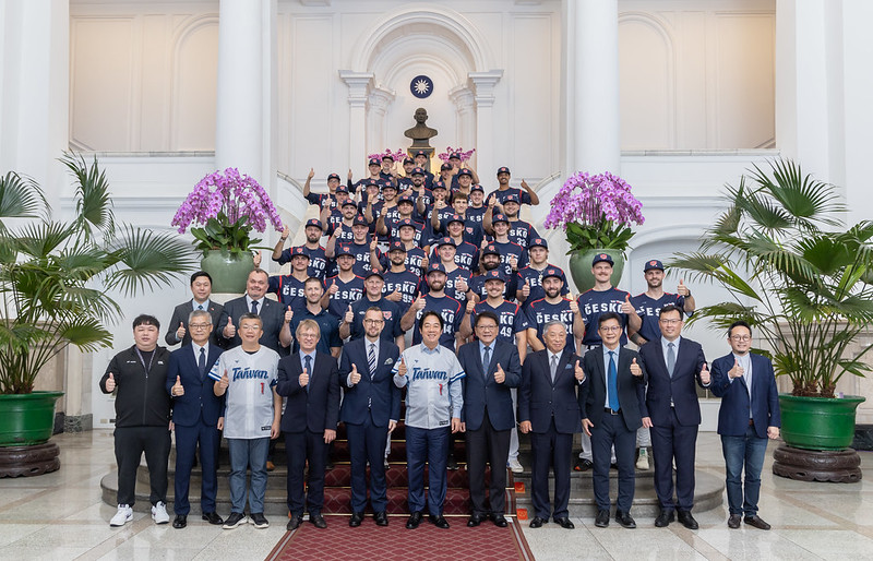 As a long-time baseball fan, I am very pleased to meet with the Czech national baseball team here at the Presidential Office. Many team members are actually part-timers whose principal occupations are in such fields as firefighting, teaching, medicine, financial analysis, and real estate brokerage, to name just a few. Everyone’s passion for the sport has earned the team a ranking of number 15 in the world and placed them among the top three in Europe. Indeed, in last year’s World Baseball Classic (WBC), the team scored a come-from-behind win over China to take the Czech Republic’s first-ever victory in the WBC tournament. It was an admirable win and an exciting game, and Taiwanese fans were thrilled.