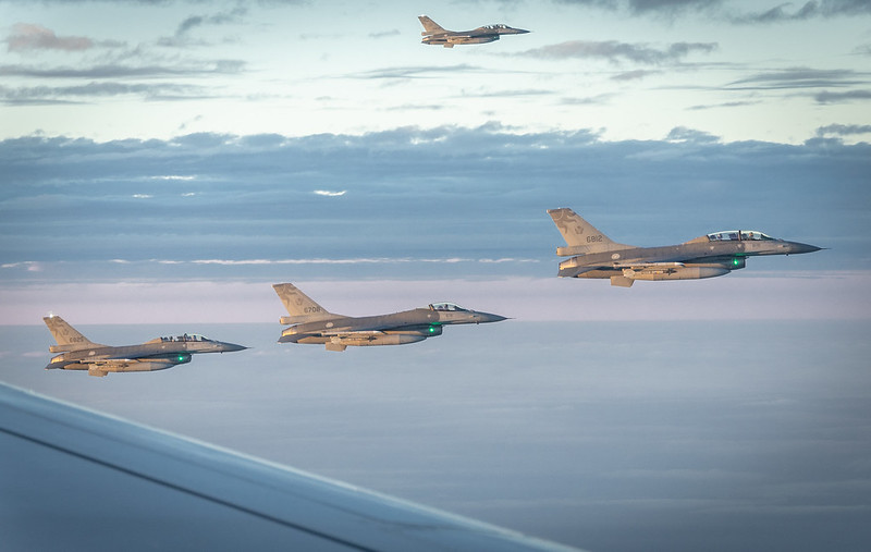 This is also the first time for me to see F-16V fighter jets escort my aircraft and deliver an aerial salute, which I found very moving. The sea of clouds outside the aircraft, with its many layers, is quite beautiful. Everyone should take the opportunity to enjoy the view.