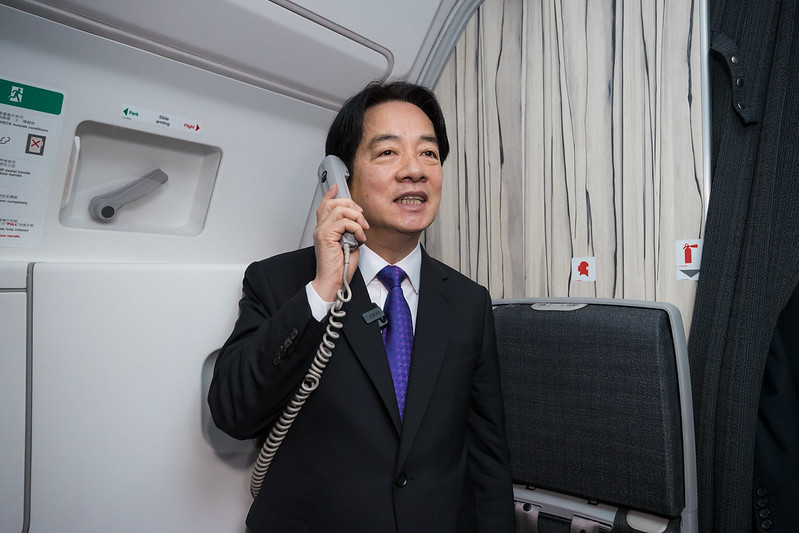 At 4:30 p.m. on Saturday, November 30, President Lai Ching-te departed from Taiwan for a visit to our diplomatic allies the Republic of the Marshall Islands, Tuvalu, and the Republic of Palau. During the flight, President Lai delivered remarks thanking all those on staff for their hard work making preparations, and all the delegation members, traveling press corps, and the China Airlines crew members for doing their part to expand Taiwan’s international space. He then expressed hope that everyone will work together to help Taiwan engage steadily and confidently with the world.
