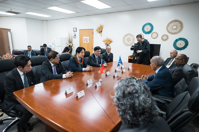 Upon his arrival to the Marshall Islands, President Lai was greeted by Nitijela Speaker Brenson Wase and Vice Speaker Isaac Zackhras. Following the arrival, a bilateral talk was held, in which they exchanged thoughts on matters of concern. Afterward, President of the Marshall Islands Hilda C. Heine and Speaker Wase accompanied President Lai to the Nitijela chamber, where he delivered an address.