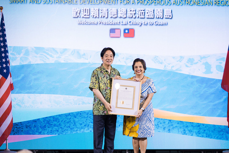Following the speeches, Governors Leon Guerrero and Palacios presented President Lai with congratulatory letters, and CNMI Senator Celina Babauta presented President Lai with a copy of the CNMI Senate’s Taiwan-friendly resolution.
