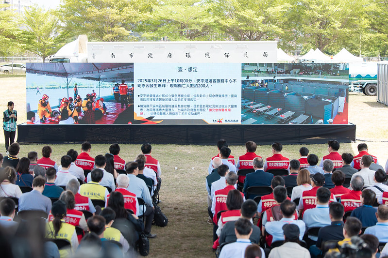 I also want to thank the civil society organizations and self-initiating community forces I mentioned earlier, as well as the Tainan City medical organizations that took part, including Chi Mei Medical Center, National Cheng Kung University Hospital, Tainan Medical Association, and other district hospitals and clinics. In addition, the participation of auxiliary police, auxiliary firefighters, auxiliary traffic police, and other community service workers was another wonderful aspect of today’s exercises.