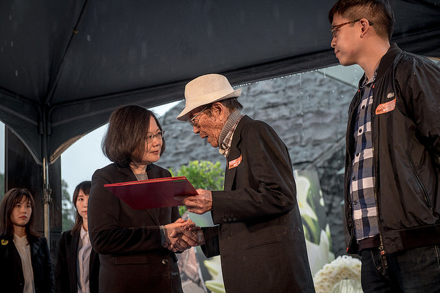 Returning that signboard was a symbol that the justice, dignity, and hope that Taiwanese lost during the 228 Incident can also be recovered. We're grateful to the older generation, who suffered tremendous hardships. Future generations in Taiwan will always remember their courage. Our quest for transitional justice has begun. There will surely be setbacks and obstacles along the way, but Taiwan will continue to move forward and embrace reconciliation and unity. Thank you.