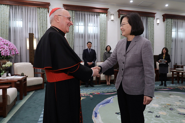 President Tsai Ing-wen met with a delegation led by Cardinal Fernando Filoni, Prefect of the Vatican's Congregation for the Evangelization of Peoples on the afternoon of February 28. President Tsai stated that Taiwan and the Vatican share the common values of freedom, human rights, and benevolence. In the future, Taiwan will continue to partner with the Holy See in humanitarian and charitable work, contributing even more to the world, she said.