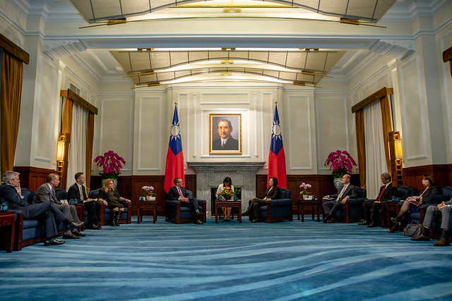 President Tsai began her remarks by welcoming President Rupert Hammond-Chambers and the delegation to the Presidential Office, stating that this is the second time in three months that the USTBC has visited Taiwan. These frequent meetings show that Taiwan-US private sector ties are just as strong as official ties. All of the distinguished guests here today work in the defense industry, she said, and have seen Taiwan's commitment to building up self-defense capabilities in recent years.