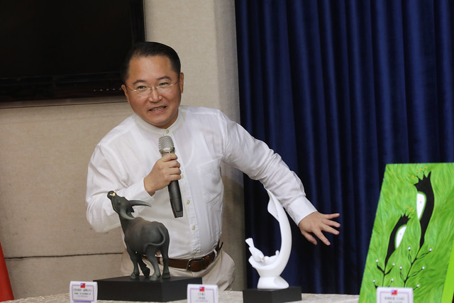 After Director-General Chang concluded her remarks, Lu Guan-zhong (the artist who executed "Bodhicitta") and Li Kuo-chin (who created "Pride in Stride—Taiwan Water Buffalo") took the microphone to explain the thought processes behind their creations, and what they learned in the course of their work.