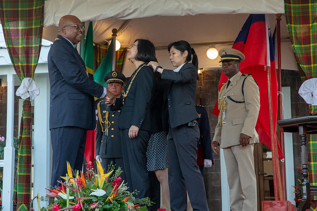 President Tsai then received the Order of St. Christopher and Nevis from Governor-General Seaton, and delivered remarks.