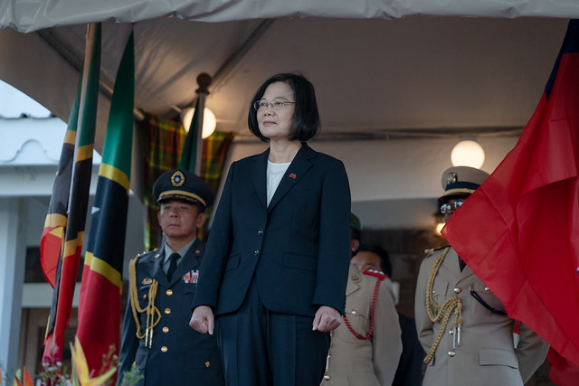 President Tsai Ing-wen and her delegation, currently traveling overseas on their Journey of Freedom, Democracy, and Sustainability, attended an official welcome ceremony at the Government House of St. Christopher and Nevis early on the evening of July 15 local time (morning of July 16 Taipei time).
