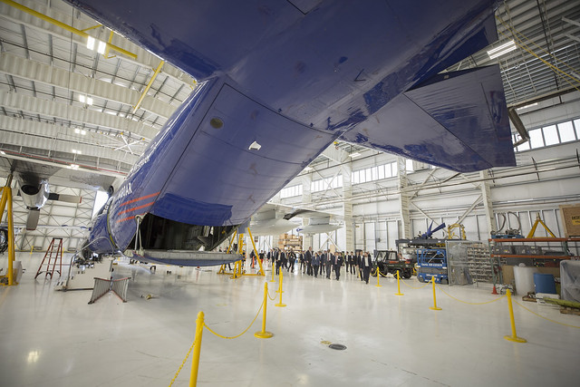 President Tsai and her group then visited the EOL. Led by Director Joseph, they inspected a C-130 tactical aircraft repurposed as a meteorological observation aircraft. Afterward, they walked over to a hangar to see a G-5 business jet repurposed for meteorological observation, and boarded the plane. President Tsai’s interest was piqued by the plane’s radar equipment, and how NCAR is employing it in Taiwan.