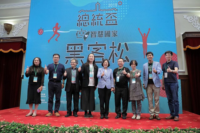 After President Tsai arrived, Minister without Portfolio Audrey Tang (唐鳳) announced the names of the five winning teams: Rounding Team, Angels of the Aged, Judicial Yuan, Loan Alert, and Gov Data Opener.